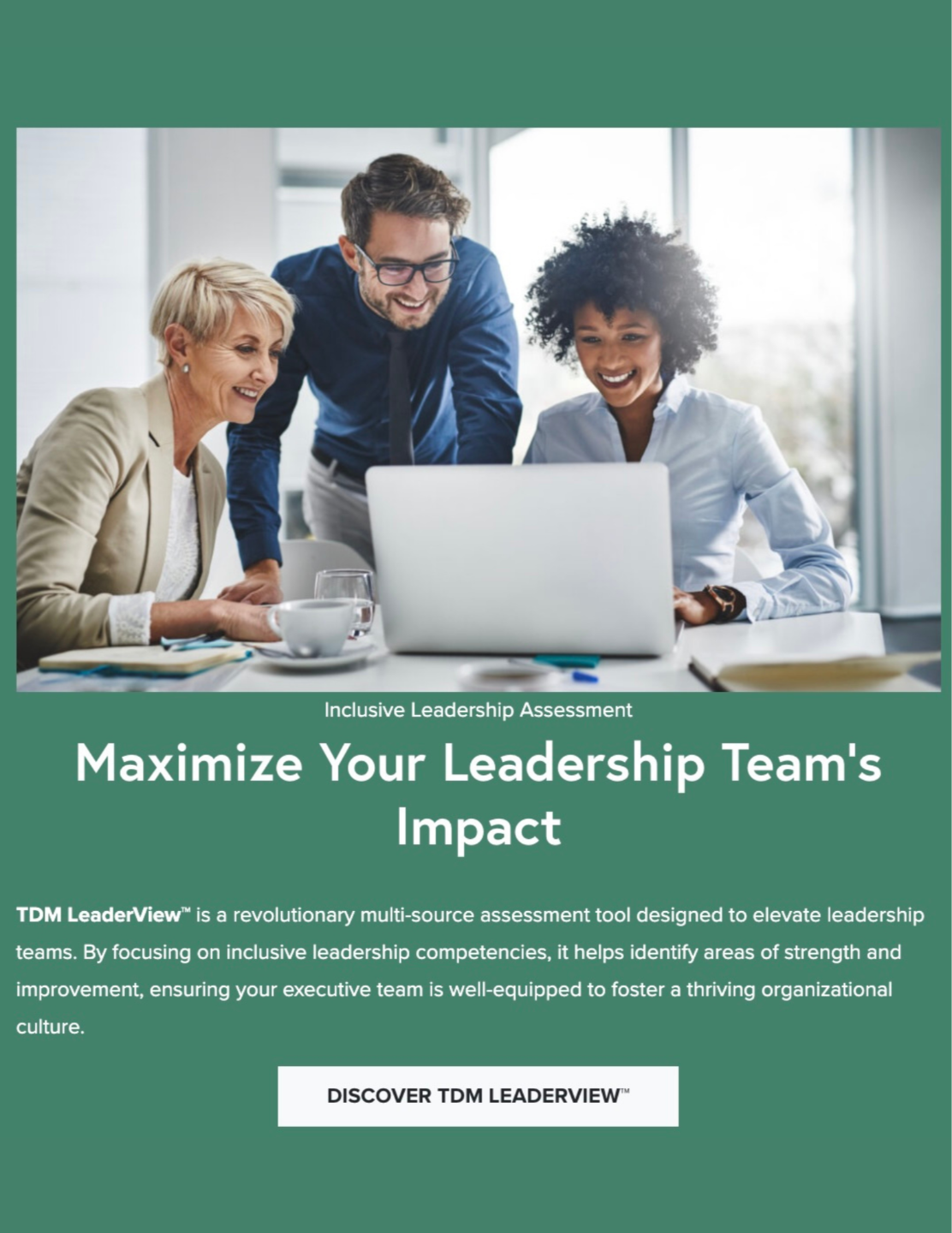 TDM LeaderView™ helps you unlock team dynamics and gain practical insights about your leadership style. Register for your free custom assessment and elevate your impact.